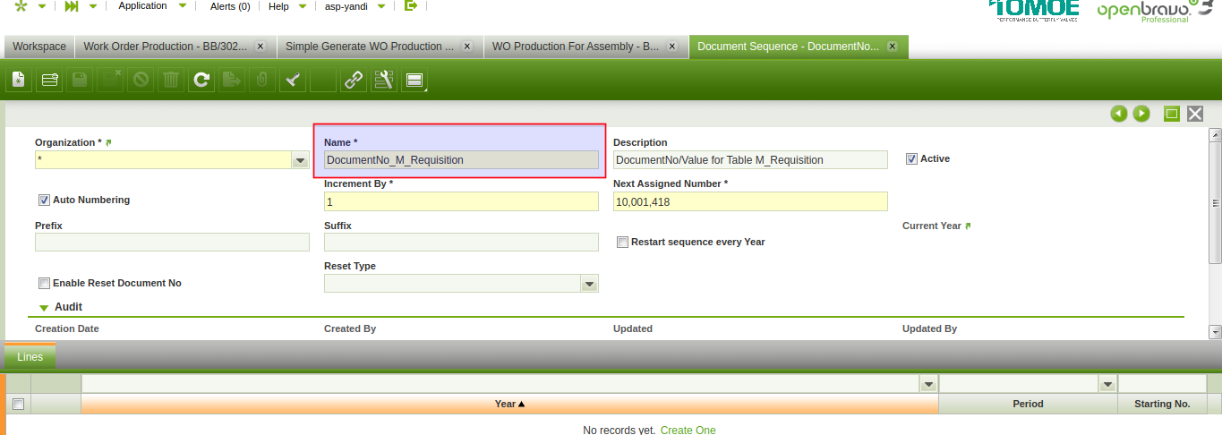 document no for new table